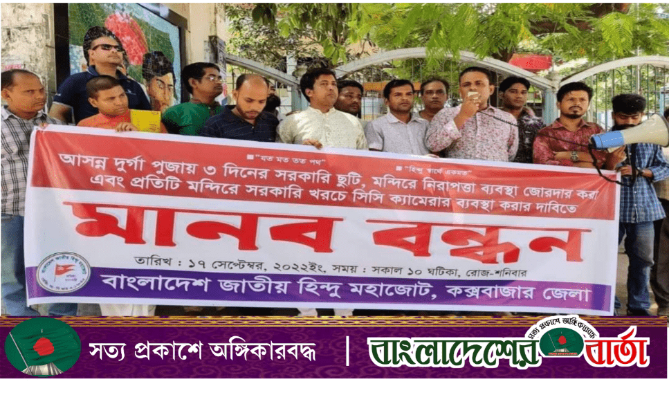 কক্সবাজারে দূর্গা পূজার মন্দিরে/ সরকারি খরচে সিসি ক্যামেরার ব্যবস্থার দাবিতে মানববন্ধন