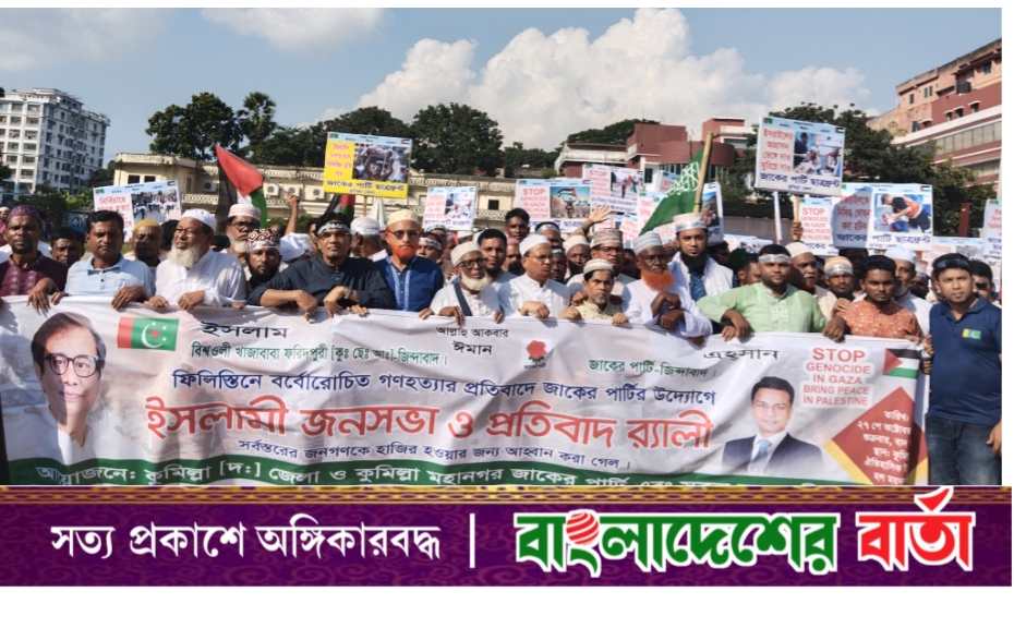 ইসরাইলি আগ্রাসনের প্রতিবাদে কুমিল্লায় জাকের পার্টির বিক্ষোভ মিছিল
