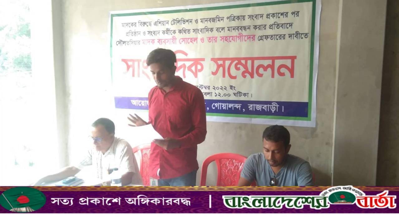 রাজু আহমেদ॥ রাজবাড়ীর গোয়ালন্দ উপজেলার মানবজমিন পত্রিকা ও এশিয়ান টিভির প্রতিনিধি সুজন খন্দকারের উপর হামলা ও তার বিরুদ্ধে সেই মাদক