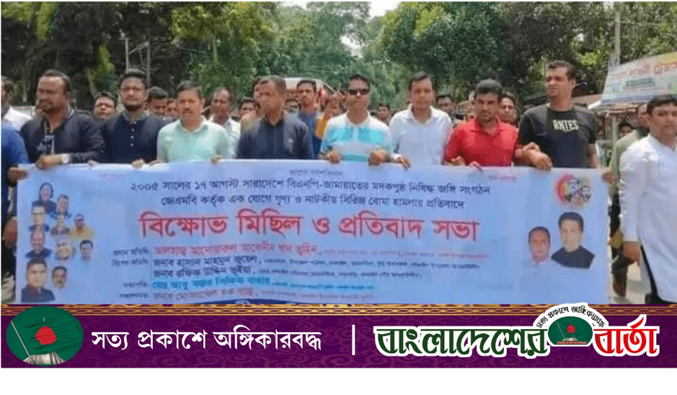 ময়মনসিংহের নান্দাইলে সিরিজ বোমা হামলার প্রতিবাদে যুবলীগের বিক্ষোভ